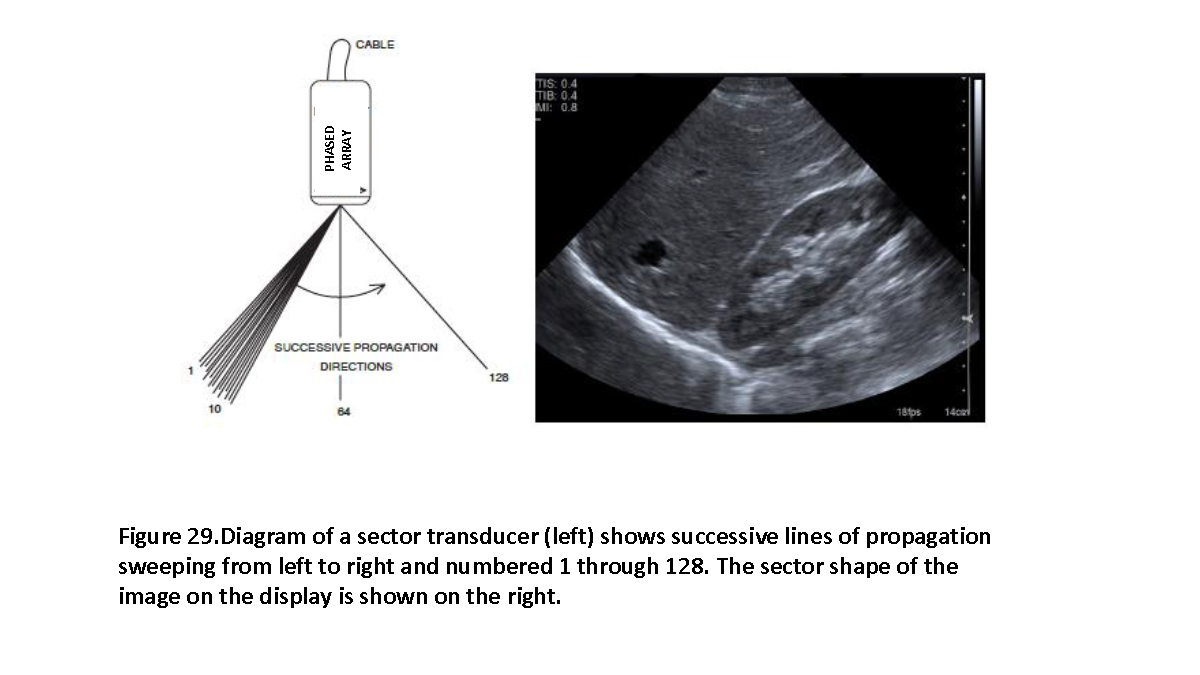A beamformer is a method of adjusting, combining, or processing waveforms going into or received from an array of transducer elements to shape and direct an ultrasound beam. (see Figures 10, 29, 30 and 35)